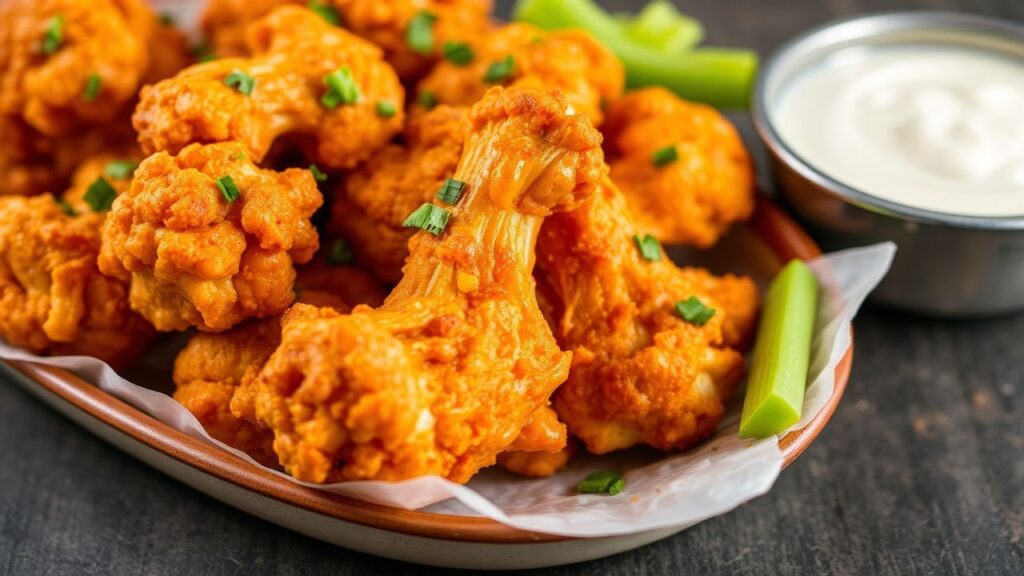 Crispy cauliflower buffalo wings deliver the classic buffalo-wing craving with a plant-based twist. You get crunchy baked florets and a tangy, spicy sauce that clings like the real thing.
