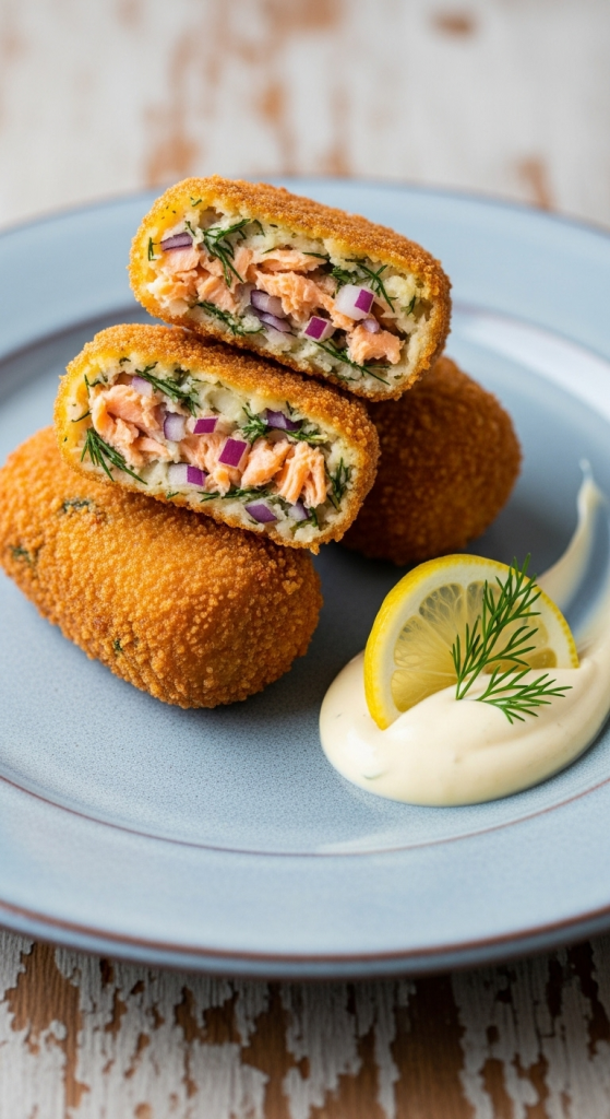 A1: Salmon croquettes are golden, crispy patties made from flaked salmon mixed with breadcrumbs, herbs, and seasonings. Think of them as little flavor-packed nuggets that blend the rich taste of salmon with the satisfying crunch of a perfectly fried exterior. They’re a cozy, comforting dish with a gourmet spin.