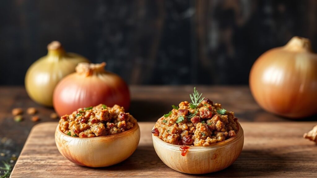 There’s something irresistibly charming about the humble onion—its layers hide not just flavor, but the kind of aroma that makes kitchens feel warm. Savory stuffed onions turn that everyday vegetable into a satisfying meal with tender cups and a spiced ground meat filling.