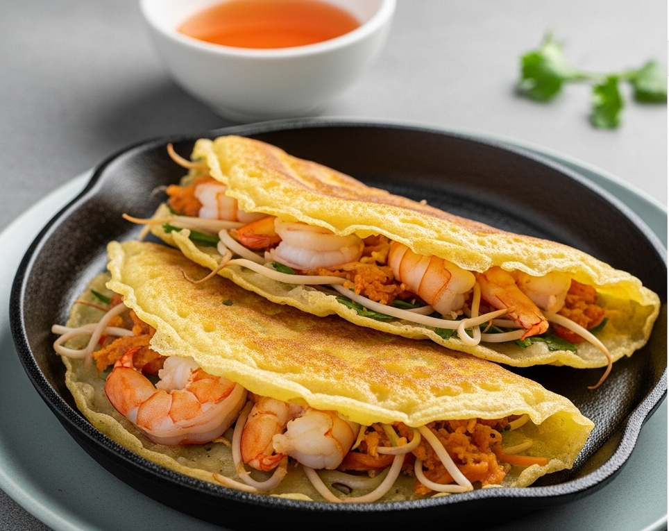 Crispy Sizzling Rice Flour Crepes Stuffed with Savory Shrimp